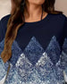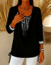 SPECIFICATIONS Top Type: Tops Style: Casual Material: Cotton Blends Occasion: Daily Neckline: Round Neck Pattern Type: Geometric Print Sleeve Type: Regular sleeve Sleeve Length: 3/4 Sleeve Fit Type: Loose Season: Fall,Winter Package Includes: 1 x Top SIZE TABLE Size Bust Length CM INCH CM INCH S 97 38.19 65 25.59 M 101 39.76 6...