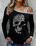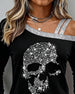 Off-The-Shoulder Skull Print Long-Sleeved Top