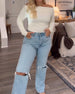 Long-Sleeved V-Neck Ribbed Top
