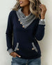 Long-Sleeved Patchwork Pleated Blouse