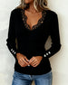 SPECIFICATIONS Top Type: Tops Style: Casual Material: Cotton Blends,Lace Occasion: Daily Neckline: V neck_V Pattern Type: Solid Color Sleeve Type: Regular sleeve Sleeve Length: Long Sleeve Fit Type: Regular Season: Fall,Winter Package Includes: 1 x Top SIZE TABLE Size Bust Length CM INCH CM INCH S 92 36.22 65 25.59 M 96 37.8 66.5 26...