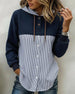 Buttoned Hooded Vertical Stripe Patchwork Shirt