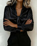Stylish Solid-Color V-Neck Blouse