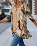 SPECIFICATIONS Top Type: Tops Style: Casual Material: Cotton Blends Occasion: Daily Neckline: V neck_V Pattern Type: Print Sleeve Type: Regular sleeve Sleeve Length: 3/4 Sleeve Fit Type: Regular Season: Fall,Winter Details: Buttons,Fake two pieces Package Includes: 1 x Top SIZE TABLE Size Bust Length CM INCH CM INCH S 97 38.19 68...