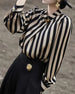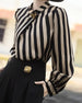 SPECIFICATIONS Top Type: Blouses Style: Elegant Material: Polyester Occasion: Daily Neckline: Stand Collar Pattern Type: Striped Sleeve Type: Puff Sleeve Sleeve Length: Long Sleeve Fit Type: Regular Season: Fall,Winter Details: Buttons,Shirred Package Includes: 1 x Blouse SIZE TABLE Size Bust Length CM INCH CM INCH S 97 38.19 65...