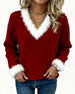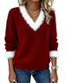 V-Neck Contrast Solid Color Long-Sleeved Top