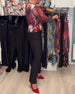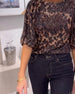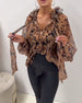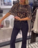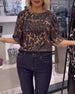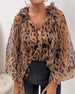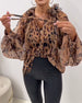 Lantern-Sleeve Sequined Leopard-Print Blouse