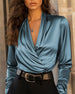 Elegant Satin Flared Sleeve Shirt