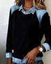 Printed Fake Two-Piece Long-Sleeved Top