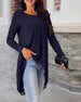 SPECIFICATIONS Top Type: Tops Style: Casual Material: Cotton Blends Occasion: Daily Neckline: Round Neck Pattern Type: Solid Color Sleeve Type: Regular sleeve Sleeve Length: Long Sleeve Fit Type: Regular Season: Fall,Winter Details: Irregular Package Includes: 1 x Top SIZE TABLE Size Bust Length CM INCH CM INCH S 97 38.19 65 25....