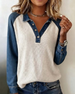 SPECIFICATIONS Top Type: Tops Style: Casual Material: Cotton Blends Occasion: Daily Neckline: V neck_V Pattern Type: Color Block Sleeve Type: Regular sleeve Sleeve Length: Long Sleeve Fit Type: Loose Season: Fall,Winter Details: Buttons Package Includes: 1 x Top SIZE TABLE Size Bust Length CM INCH CM INCH S 92 36.22 65 25.59 M...