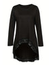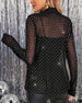 Irregular Long-Sleeved Mesh Patchwork Top