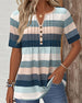 SPECIFICATIONS Top Type: Blouses Style: Casual Material: Cotton Blends Occasion: Daily Neckline: V neck_V Pattern Type: Striped,Color Block Sleeve Type: Regular sleeve Sleeve Length: Short Sleeve Fit Type: Regular Season: Spring,Summer Details: Buttons,Shirred Package Includes: 1 x Blouse SIZE TABLE Size Bust Length CM INCH CM INC...