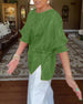SPECIFICATIONS Top Type: Blouses Style: Casual Material: Cotton Blends Occasion: Daily Neckline: V neck_V Pattern Type: Solid Color Sleeve Type: Petal Sleeve Sleeve Length: Short Sleeve Fit Type: Regular Season: Spring,Summer Details: Shirred Package Includes: 1 x Blouse SIZE TABLE Size Bust Length CM INCH CM INCH S 97 38.19 68 2...