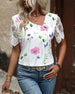 SPECIFICATIONS Top Type: Blouses Style: Casual Material: Cotton Blends Occasion: Daily Neckline: V neck_V Pattern Type: Print Sleeve Type: Petal Sleeve Sleeve Length: Half Sleeve Fit Type: Regular Season: Spring,Summer Package Includes: 1 x Blouse SIZE TABLE Size Bust Length CM INCH CM INCH S 97 38.19 65 25.59 M 101 39.76 66.5...