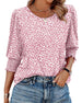 SPECIFICATIONS Top Type: Blouses Style: Casual Material: Cotton Blends Occasion: Daily Neckline: Round Neck Pattern Type: Print Sleeve Type: Puff Sleeve Sleeve Length: Half Sleeve Fit Type: Regular Season: Spring,Summer Package Includes: 1 x Blouse SIZE TABLE Size Bust Length CM INCH CM INCH S 104 40.94 68 26.77 M 108 42.52 69....