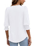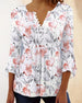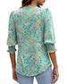 SPECIFICATIONS Top Type: Blouses Style: Casual Material: Cotton Blends Occasion: Daily Neckline: V neck_V Pattern Type: Print Sleeve Type: Flare Sleeve Sleeve Length: 3/4 Sleeve Fit Type: Regular Season: Spring,Summer Details: Ruffle Package Includes: 1 x Blouse SIZE TABLE Size Bust Length CM INCH CM INCH S 97 38.19 68 26.77 M ...