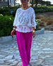 SPECIFICATIONS Top Type: Blouses Style: Casual Material: Cotton Blends Occasion: Daily Neckline: V neck_V Pattern Type: Solid Color Sleeve Type: Ruffle Sleeve Sleeve Length: Long Sleeve Fit Type: Regular Season: Spring,Summer Details: Ruffle Package Includes: 1 x Blouse SIZE TABLE Size Bust Length CM INCH CM INCH S 97 38.19 65 ...