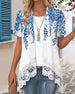 SPECIFICATIONS Top Type: Blouses Style: Casual Material: Cotton Blends Occasion: Daily Neckline: Slant Collar Pattern Type: Print Sleeve Type: Regular sleeve Sleeve Length: Short Sleeve Fit Type: Regular Season: Spring,Summer Details: Patchwork,Hollow Out,Lace Package Includes: 1 x Blouse SIZE TABLE Size Bust Length CM INCH CM INC...