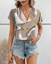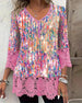 Three-Quarter Sleeve Loose Printed Irregular Blouse