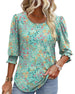 SPECIFICATIONS Top Type: Blouses Style: Casual Material: Cotton Blends Occasion: Daily Neckline: Round Neck Pattern Type: Print Sleeve Type: Lantern Sleeve Sleeve Length: 3/4 Sleeve Fit Type: Regular Season: Spring,Summer Package Includes: 1 x Blouse SIZE TABLE Size Bust Length CM INCH CM INCH S 96 37.80 69 27.17 M 100 39.37...