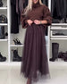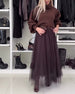 Casual solid color mesh lace-up pleated skirt