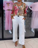 Floral embroidered lace-up solid color casual pants