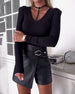 SPECIFICATIONS Style: Casual Category: Jumpsuits Material: A: 100% Polyester; B: 95% Polyester, 5% Spandex Pattern Type: Sequin Neckline: V neck_V Sleeve Type: Regular sleeve Sleeve Length: Long Sleeve Pants Type: Conventional Pants Length: Short Fit Type: Regular Season: Fall,Winter Occasion: Daily Package Includes: 1 x Jumpsuits SIZE TAB...