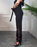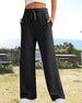 SPECIFICATIONS Style: Casual Material: Cotton Blends,Lace Pattern Type: Solid Color Pants Type: Wide Leg Pants Length: Long Waist Type: Mid Waist Fit Type: Regular Season: Spring,Summer Details: Patchwork,Lace Up,Slit,Lace Occasion: Daily Package Includes: 1 x Pants SIZE TABLE Size Waist Hip Length CM INCH CM INCH CM INCH S 67 26.38 9...