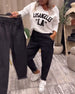 SPECIFICATIONS Style: Casual Material: A: 100% Polyester; B: 95% Polyester, 5% Spandex Pattern Type: Letter Pants Type: Tapered/Carrot Pants Length: Long Waist Type: Mid Waist Fit Type: Regular Season: Spring,Fall,Winter Details: Pocket,Drawstring Occasion: Daily Package Includes: 1 x Pants SIZE TABLE Size Waist Length Hip CM INCH CM ...