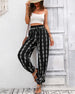 SPECIFICATIONS Style: Casual Material: Cotton Blends Pattern Type: Print Pants Type: Lantern Pants Length: Long Waist Type: High Waist Fit Type: Regular Season: Spring,Summer Details: Lace Up Occasion: Daily Package Includes: 1 x Pants SIZE TABLE Size Waist Hip Length CM INCH CM INCH CM INCH S 65-98 25.59-38.58 118 46.46 107 4...