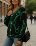 Long Loose Letter Printed Cardigan