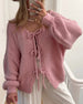 Lazy style solid color lace-up cardigan