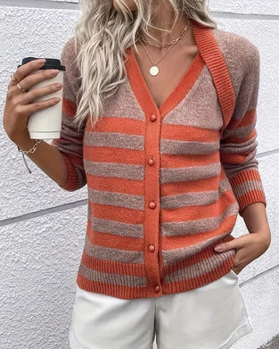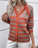 Long-Sleeved Striped V-Neck Cardigan