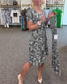 Lapel Fashion Half-Length Sleeve Printed Swing Dress