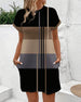 SPECIFICATIONS Style: Casual Material: Cotton Blends Dress Type: Shift dress Dress Length: Knee Length Neckline: V neck_V Pattern Type: Striped,Solid Color Sleeve Type: Regular sleeve Sleeve Length: Short Sleeve Details: Zipper Fit Type: Regular Season: Spring,Summer Occasion: Daily Package Includes: 1 x Dress SIZE TABLE Size Bust Le...