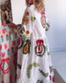 SPECIFICATIONS Style: Casual Material: Cotton Blends Dress Type: A-Line Dress Length: Maxi Neckline: V neck_V Pattern Type: Print Sleeve Type: Regular sleeve Sleeve Length: 3/4 Sleeve Details: Tassel,Shirred Fit Type: Regular Season: Spring,Summer Occasion: Daily Package Includes: 1 x Dress SIZE TABLE Size Bust Length CM INCH CM INCH ...