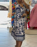 SPECIFICATIONS Style: Casual Material: Cotton Blends Dress Type: Shift dress Dress Length: Knee Length Neckline: Round Neck Pattern Type: Tribal Print Sleeve Type: Flare Sleeve Sleeve Length: Half Sleeve Details: Drawstring Fit Type: Loose Season: Spring,Summer Occasion: Daily Package Includes: 1 x Dress SIZE TABLE Size Bust Leng...