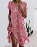 V-Neck Floral Print Waisted Short-Sleeved Dress
