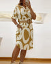 SPECIFICATIONS Style: Elegant Material: Chiffon,Polyester Dress Type: A-Line Dress Length: Midi Neckline: V neck_V Pattern Type: Print Sleeve Type: Regular sleeve Sleeve Length: Short Sleeve Details: Patchwork, Lace Up Fit Type: Regular Season: Spring, Summer, Fall Occasion: Daily Package Includes: 1 x Dress SIZE TABLE Size...
