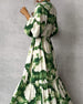 Elegant tie-dye patchwork drawstring balloon sleeve dress