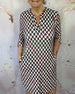 SPECIFICATIONS Style: Casual Material: Cotton Blends Dress Type: Shirt Dress Length: Knee Length Neckline: Lapel Pattern Type: Print Sleeve Type: Regular sleeve Sleeve Length: 3/4 Sleeve Details: Buttons Fit Type: Regular Season: Spring, Summer Occasion: Daily Package Includes: 1 x Dress SIZE TABLE Size Bust Length CM INCH CM I...