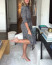 SPECIFICATIONS Style: Casual Material: 5% Spandex,95% Polyester Dress Type: Shift dress Dress Length: Midi Neckline: V neck_V, Lapel Pattern Type: Striped Sleeve Type: Regular sleeve Sleeve Length: 3/4 Sleeve Details: Buttons Fit Type: Loose Season: Summer Occasion: Daily Package Includes: 1 x Dress SIZE TABLE Size Bust Length Sleev...