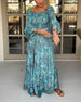 SPECIFICATIONS Style: Elegant Material: 5% Spandex, 95% Polyester Dress Type: A-Line Dress Length: Maxi Neckline: Off Shoulder Pattern Type: Print Sleeve Type: Flare Sleeve Sleeve Length: Nine Points Sleeve Details: Shirred Fit Type: Regular Season: Spring, Summer Occasion: Daily Package Includes: 1 x Dress SIZE TABLE Size Bus...