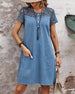 SPECIFICATIONS Style: Elegant Material: Cotton, Polyester Dress Type: Shift dress Dress Length: Above-knee Neckline: Round Neck Pattern Type: Solid Color Sleeve Type: Regular sleeve Sleeve Length: Short Sleeve Details: Pocket, Buttons, Hollow Out, Lace Fit Type: Regular Season: Spring, Summer Occasion: Daily Package Includes: 1 x Dress SI...