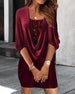 SPECIFICATIONS Style: Casual, Elegant Material: Sequins, Velvet Dress Type: Shift dress Dress Length: Above-knee Neckline: Square Neck Pattern Type: Solid Color Sleeve Type: Regular sleeve Sleeve Length: 3/4 Sleeve Details: Patchwork Fit Type: Regular Season: Spring, Summer, Fall, Winter Occasion: Daily, Party Package Includes: 1 x Dress SI...