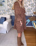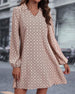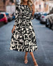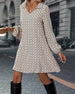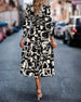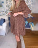 SPECIFICATIONS Style: Casual, Vacation Material: Cotton Blends Dress Type: A-Line Dress Length: Knee Length Neckline: V neck_V Pattern Type: Print, Leopard Sleeve Type: Ruffle Sleeve Sleeve Length: Long Sleeve Fit Type: Regular Season: Spring, Fall Occasion: Daily, Vacation Package Includes: 1 x Dress SIZE TABLE Size Bust Length CM IN...