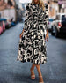 SPECIFICATIONS Style: Casual, Business Material: Cotton Blends Dress Type: T-shirt Dress Length: Maxi Neckline: V neck_V Pattern Type: Print Sleeve Type: Regular sleeve Sleeve Length: Long Sleeve Details: Buttons Fit Type: Regular Season: Spring, Fall, Winter Occasion: Daily, Work Package Includes: 1 x Dress SIZE TABLE Size Bus...