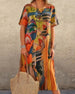 SPECIFICATIONS Style: Casual Material: Cotton Blends Dress Type: Shift dress Dress Length: Midi Neckline: Round Neck Pattern Type: Geometric Print, Print Sleeve Type: Regular sleeve Sleeve Length: Short Sleeve Fit Type: Loose Season: Spring, Summer, Fall Occasion: Daily Package Includes: 1 x Dress SIZE TABLE (cm) Size Bust Len...
