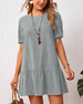 SPECIFICATIONS Style: Casual Material: Cotton and linen Dress Type: Shift dress Dress Length: Above-knee Neckline: Round Neck Pattern Type: Solid Color Sleeve Type: Puff Sleeve Sleeve Length: Short Sleeve Details: Ruffle Fit Type: Regular Season: Spring, Summer, Fall Occasion: Daily Package Includes: 1 x Dress SIZE TABLE (cm) ...